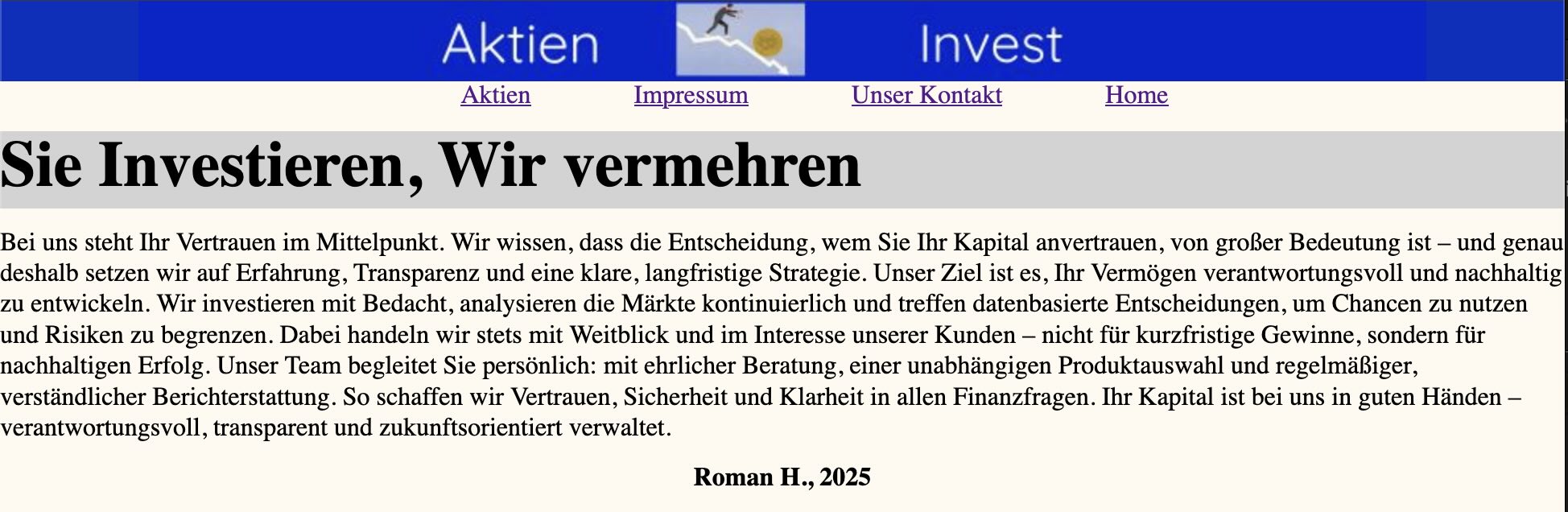 Mit HTML und CSS gestalten die Schülerinnen und Schüler der Jahrgangsstufe 9 Schritt für Schritt ihre eigene Website – vom ersten "Hello World" bis zur fertigen Projektseite. Einige Ergebnisse sind hier zu sehen: