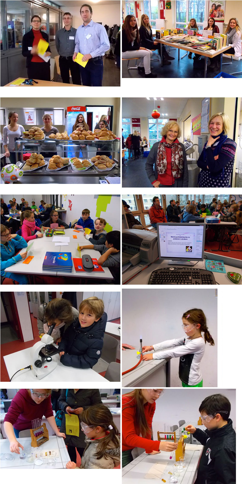 Tag der offenen Tür 2014Am Samstag, den 29.11.2014 öffnete das Apostelgymnasium wieder seine Türen.Schon weit vor 10:00 Uhr drängten sich viele Grundschüler mit ihren Eltern an den Informationstischen, um Eintrittskarten für die Unterrichtsangebote zu bekommen. Die Besucher wurden vom Unterstufenchor unter Leitung von Frau Görgens musikalisch auf den Vormittag eingestimmt und anschließend von Schulleiter Dr. Klaus Zimmermann offiziell begrüßt. Im Mittelpunkt des Vormittages standen Unterrichtsstunden der 5. und 6. Klassen, die bei den Viertklässlern Lust auf Neben dem offenen Unterricht warteten zahlreiche Ausstellungen verschiedener Fachbereiche und Präsentationen auf die großen und kleinen Besucher: die Blitzmaschine im Physikraum, Feuer und Flammen im Chemieraum, Mikroskope im Biologieraum sowie Mitmachangebote im Technikraum und an den Computern faszinierten nicht nur die Schülerinnen und Schüler der Grundschulen. Die Schülerbibliothek öffnete ihre Türen für einen Bücherflohmarkt. In den drei Sporthallen wurde nicht nur Unterricht gezeigt: viele Kinder wurden von der Sporthelfer-AG zum Toben und Ausprobieren der Waveboards, Pedalos und weiterer Sportgeräte animiert. Neben Schnupperunterricht und Vorführungen fand eine Informationsveranstaltung zur Sportschule NRW statt. In der Aula informierten Eltern über die erfolgreiche Förderung hörgeschädigter Kinder. Und last but not least gab der Kostümworkshop für den Schull- un Veedelszöch Einblick in das gemeinschaftliche Engagement von Eltern Schülern und Lehrern. Die Schülerinnen und Schüler des Abiturjahrgangs hatten eine Cafeteria vorbereitet, so dass unsere kleinen und großen Besucher Kaffee, frische Brötchen oder leckeren Kuchen genießen konnten. Der Tag der offenen Tür wurde mit Führungen durch das Schulgebäude abgerundet. An dieser Stelle sei allen Beteiligten herzlich gedankt: